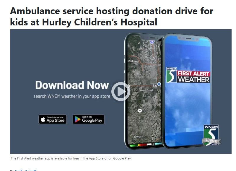GRAND BLANC, Mich. (WNEM) - A Genesee County ambulance service is collecting donations for the Hurley Children’s Hospital Child and Family program.
